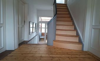 180 square metres are spread over three floors. There are five bedrooms with sleeping facilities for up to twelve people, three bathrooms, a living room, a kitchen, a dining room and a small, cosy, covered (smoking) balcony. Children can play hide and seek in the house, build dens in the attic, or use the available toys. The house is lovingly and comfortably furnished. All daily and holiday necessities and free Wi-Fi are available.