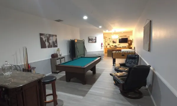 A rainy day at this home is nothing to be upset about. Spend a day in the game room which includes, skee ball, ping pong, foosball, pool, darts, board games, cards, movies, karaoke and so much more.