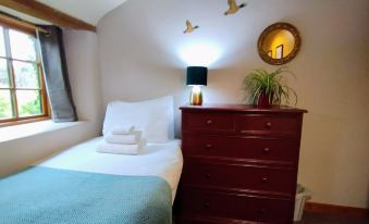 This comfortable cottage offers 1 double and 1 twin bedroom. The twin bedroom can be set up with one single bed if guests prefer more floor space. A bathroom with shower over and a spacious lounge/kitchen/diner with TV, Freeview and DVD, with access to the front and rear garden areas. The kitchen is fully equipped with a gas hob, electric oven, microwave, integrated fridge, separate under-counter freezer and dishwasher. Wireless internet connection available. The front garden has patio furniture and overlooks one of our fields where you might find alpacas grazing. The back garden includes a rotary drier and easy access to a shared laundry room with washing machine.About pets:Pets allowed: dogs less than 55 lbs per pet (limit 2 pets total).Please let us know if you'll be bringing a dog.About checkOut:Check out before 10:00 AM.About children:Children allowed: ages 0-17.About checkIn:Check in after 3:00 PM.About smoking:Smoking is not permitted.No smoking /vaping in the barn or communal grounds.About minBookingAge:Minimum age to rent: 21.About events:No events allowed.