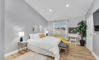 You too can strike gold by booking this place. This condo is on the second floor of a two-story building, accessed by stairs. It is completely remodeled and was built in the early 80s. This apartment measures a little over 919 sqft but feels larger due to its open concept.