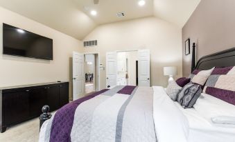 Stunning renewed 16 guests HOUSE with the best amenities, six 50+ inch screen Tv's equipped with wifi and cable. 3 King beds, 3 Queen beds, 1 Air mattress, and a Futon. It is equipped with 3.5 beautiful bathrooms. Perfect for large family gatherings and entertainment. This space is modern, remodeled, very spacious, and fresh. You have access to free wifi, cable, a coffee station, garage parking, and a washer and dryer. Only 10 minute drive to Curtis Culwell Center, 30 minutes from DFW airport.