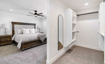 Welcome to Nan’s Nest—a thoughtfully curated home where warm colors, deep wood tones, and rich textures create a space that feels both grounded and elevated. Designed with a more masculine edge, this cozy retreat features handsome cabinetry, darker furnishings, and soft ambient lighting that invites you to slow down and settle in.