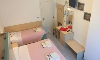 Classico hotel a conduzione familiare della riviera romagnola situato a 100 metri dal lungomare di Rimini è vicinissimo alla ruota panoramica e al parco Fellini. Camere un po’ datate e piccole, ma funzionali per brevi soggiorni. Ingresso e sala da pranzo decisamente da ristrutturare in quanto vecchi e poco funzionali. Buoni i pasti, sopratutto la colazione, ricca di torte e cornetti. Nota negativa l’assenza di una macchinetta per cappuccino e latte, serviti in maniera poco igienica in contenitori esposti a tutti. Altra nota stonata il telefonino della titolare che inizia a squillare dalle 6 del mattino arrecando non poco disturbo a chi come me alloggiava al primo piano. Per il resto struttura senza infamia e senza lode.