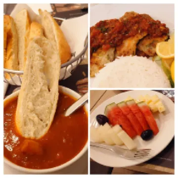 Halbpension war eine tolle Erfahrung, vor allem weil ich mir das Abend-Essen ab dem zweiten Abend (wegen einer Veranstaltung) aufs Zimmer habe liefern lassen :-) Die Optionen an den 3 Tagen waren leider sehr Tomatenmark-lastig was wegen Sodbrennen schwierig ist aber ansonsten lecker, sowie auch das Frühstück mit dem frischen Orangensaft.