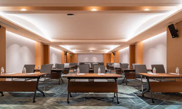 Rizhao Wucai Outlets · Sea Rhyme Hotel has a total of 154 guest rooms and is positioned as a high-end light luxury parent-child resort hotel. With the themes of sunshine, ocean and ecology, it provides high-quality guest room facilities and meticulous and warm services. The guest rooms are not only equipped with intelligent devices such as smart voice control, smart lighting, air conditioning, curtains, wireless charging and toilets, but also meet the needs of high-quality business trips. On this basis, they are furnished with exclusive children's rooms, children's bathrobes, children's toiletries and other items, which can also satisfy parent-child travel and play, allowing families to enjoy the happiness of family reunion.In addition, the hotel has a 24-hour library, an all-day buffet restaurant, a fitness center, meeting rooms, a self-service laundry room and a children's play area, with complete functional facilities. It provides you with a comfortable and secure accommodation space and a super-star quality experience.