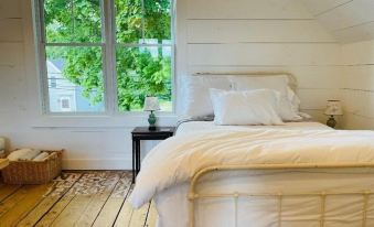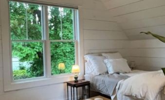 Classic White New England Farmhouse. Enjoy the newly built loft above the "barn". A separate entrance leads you upstairs to your tranquil getaway. Cream colors and natural woods relax your mind. Large windows look out to treetops with the option to close with remote control blackout blinds. Loft has clean, well-equipped kitchen. As well as beautifully tiled shower/bath combo. White leather sectional is a cozy welcome for morning coffee or a fun evening of cocktails. Friendly, safe neighborhood close to town and walking trails.About pets:No pets allowed.About checkOut:Check out before 12:00 PM.About children:Children allowed: ages 13-17.Stairs and large windows can make the Loft unsafe..About checkIn:Check in after 4:00 PM.About smoking:Smoking is not permitted.About minBookingAge:Minimum age to rent: 21.About events:No events allowed.