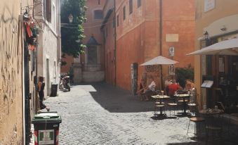 Charming apartment located on the top floor of an ancient building characteristic of the historic center overlooking the roofs and streets of Trastevere. The bright and comfortable interiors have just been renovated with design furnishings and refined modernity.