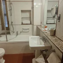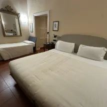 Es ist etwa 10 Gehminuten vom Bahnhof Termini entfernt, aber die Gegend wirkt nicht sehr sicher. Die Zimmer sind geräumig, aber es gibt keinen Kühlschrank. Ich habe das Hotelpersonal kaum lächeln sehen. Sie scheinen ihren Job nicht zu mögen. Positiv ist, dass die Badezimmerausstattung gut ist. Seife, Shampoo, Duschgel und Bodylotion sind vorhanden.