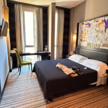 У нас был номер с завтраками, которые проходили на шестом этаже. Завтрак был по системе "шведский стол": яичница, ризотто, салатный бар, нарезанные фрукты, йогурты, тосты, небольшая станция для приготовления оладий, а также множество сладостей (несколько видов пирогов, кексов и корнетто). Все было свежим.