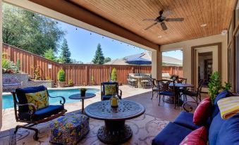 Luxury 4bdrm/3bath home boasting a peaceful private Tuscan Villa with a solar heated pool, brand new spa, hot outdoor shower, large California room with gas log fireplace and built-in outdoor kitchen. Cook at home in a beautiful fully stocked gourmet kitchen or take a 5 min drive to nearby family and high-end restaurants, movie theaters, and shopping. Outdoor gaming area includes horseshoe and bean bag toss games. EV charger and freshly tuned piano! Greenbelt is right across the street. Large community park with a playground is a short walk. 30 minutes to downtown Sacramento, 1.5 hours to Tahoe, San Francisco or Napa, and too many local attractions to list! Welcome to beautiful wonderland where functionality meets practicality and design! This luxurious, one level, all fenced home is located on a safe quiet neighborhood street. Whole house is lovingly set up for the needs of all your family members. This house feels very specious and has multiple sitting areas for conversations and dining inside and outside. Play in the pool, spa, recline and watch a movie or venture out and rent motorized as well as non-motorized sports at Folsom Lake. Enjoy great hiking and biking trails around the lake. Sacramento Aquatic center also provides non-motorized water sport rentals. Paddleboarding or kayaking anyone? Multiple wineries and craft breweries to visit and explore. Thunder Valley Casino for the fate temping kind. Kids' activities include Sunsplash Water Park, Quarry Park Adventures, Sacramento Zoo and Fairyland, bowling, mini golf, bumper cars to name a few. Guest satisfaction and happiness are our number one priority. We only own and operate two (soon to be three) houses as short-term rentals and take a lot of pride in it. Both houses are within a mile from each other, and we live nearby also. We are always available to assist our guests with any questions or concerns. Please let us know sooner rather than later if something needs to be addressed so we can make your stay more enjoyable, and the house will be ready for the next guest. But, most importantly, have a wonderful time and build those lifetime memories with your family and friends!About pets:Pets allowed: dogs (limit 3 total).About checkOut:Check out before 11:00 AM.About children:Children allowed: ages 0-17.Pack-n-play and a booster chair are available.About customRules:Absolutely no smoking in the house. $500 smoking fine enforced.