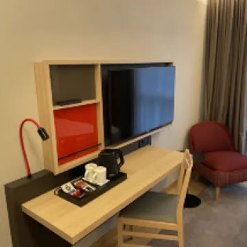 Die Lage ist zwar flughafennah und relativ zentrumsnah, aber in der Nähe gibt es eine Baustelle, und die Straße lässt sich nicht per Google Maps überqueren – eine echte Zeitverschwendung. Die Rezeptionistin wirkte ungeduldig, als sie sah, dass ich den Check-in-Automaten nicht benutzte. Die Sauberkeit war akzeptabel und die Ausstattung in Ordnung, aber insgesamt hinterließen Service und Lage keinen guten Eindruck.