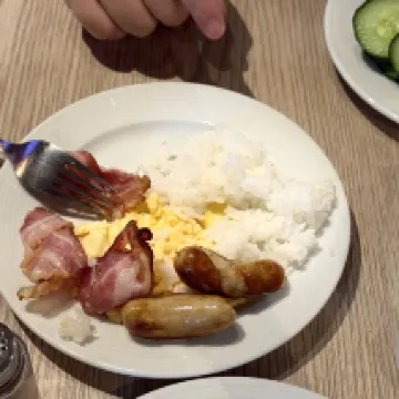 Das Frühstück im Hotel beinhaltet Reis, was eine positive Überraschung war.