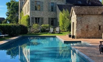 We stopped off here en route to the Dordogne. The hotel itself is beautiful, just like being a house guest in a gorgeous chateau. The pool area is exceptional, with hot tub, lovely pool, sun loungers, sauna and honesty bar. Lovely grounds and terraces. Room was comfortable and quirky, authentic chateau style. Loved the relaxed feel, honesty bar etc. What let it down was the dinner, which we had high hopes for and were expecting a gourmet treat. Instead it was barely edible, a starter of beetroot “gazpacho”, which managed to be both lumpy and watery, woefully under seasoned and frankly odd. No-one on my table finished it. The main course was a chicken breast (mine was underdone), with roasted new potatoes (soggy) and creamy peas. Taste was pleasant but bland and I can cook something far better myself. Pudding was a few slices of micro thin pineapple and a tiny shot glass of frozen pina colada with a few pomegranate seeds, perfectly edible but not substantial or skilful. The cost of all this was €52. Breakfast cost €26 each and was not much more than some cereals, baguettes and bog standard mini croissants. The whole overnight stay for 2 adults and 2 teens sharing a bedroom suite (sofa bed) was over €700, we loved the place but the food was truly below what we should have got for that price. Maybe chef was having an off day…..