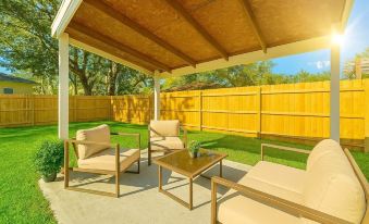 Guests have exclusive access to the entire condo via a private entrance. Enjoy the large shaded shared backyard, on-site free parking, and all the amenities within the condo, including a fully equipped kitchen, cozy living and dining areas, and a comfortable bedroom with vintage decor. Pets are welcome!