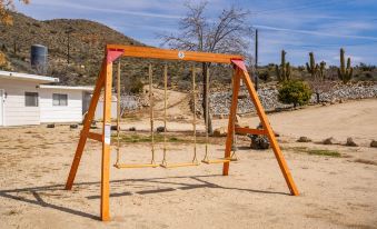 The outdoors offers plenty to do as well. Enjoy a cup of coffee as you watch the sunrise in a swinging egg chair. Stroll through the garden and surrounding wilderness of desert flora. Let the valley wind rock you in a hammock. Gaze at the mountains as your inner kid rides the swings. Huddle around the fire pit while kicking back in Adirondack's. Recline on lounge chairs, soaking in the colorful sunset. And when it gets dark, and the sky is filled with stars, bring the telescope out for a new perspective.