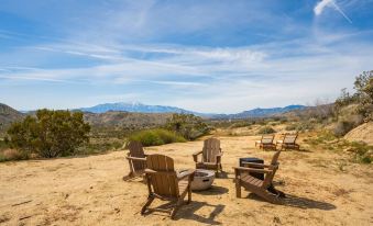 Sitting on 5 acres, on a hill overlooking Morongo Valley, with the San Bernardino Mountains serving as a backdrop, a private road will bring you home for your stay. You'll be minutes from Joshua Tree National Park, Palm Springs, Yucca Valley, local hot spots, and stores.