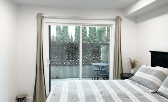 The completely remodeled kitchen is beautifully updated with quartz counters, new shaker cabinets, new refrigerator, electric range, microwave and dishwasher. The kitchen comes fully equipped - Keurig, hot water kettle, Ninja Blender, pots, pans, drinking and wine glasses, bowls, plate, complete knife set, and baking set. The bathroom is immaculate with a new vanity, sink, toilet, full tub with glass door. The living area and bedroom has new water-resistant laminate flooring. The living room contains a Samsung 65” smart TV and sofa that pulls out into a full bed. The master bedroom closet contains a full-size new washer and dryer.
