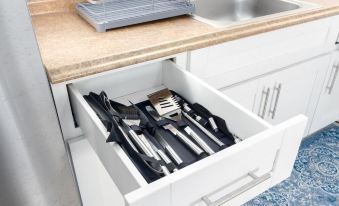 Fully stocked with all of the kitchen necessities you need to prepare a great meal at home. You will find a gas stove, oven, and a full-size refrigerator to fix meals for your group. Prep time? The kitchen counters offer plenty of counter space for all of the chefs in the kitchen. Visit a local farmers market or grocery store and then enjoy preparing a delectable meal.