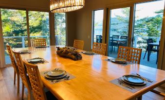 Enjoy expansive decks for outdoor living and dining, a fantastic Chef's kitchen, and cozy evenings by the fire with games and a wet bar. Each ensuite bedroom features a luxurious bathroom, perfect for family and friend gatherings. Plus, explore the private beach trail and unique rocky shore right at your doorstep. We can’t wait to host you for an unforgettable getaway!