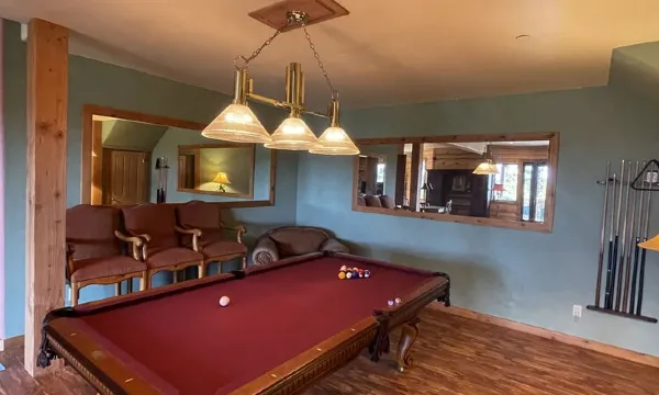 Downstairs there is a pool table, outdoor grill, and spacious common area equipped with a fireplace. The perfect place to read, write, re-new your inspiration, and experience high country living!