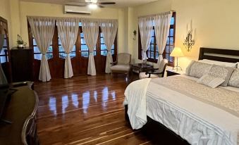 The Palms Villa includes 4 bedrooms, 3.5 baths along with an outdoor shower, private tennis court, pool and Jacuzzi. Dozens of fruit bearing trees including banana, mango, avocado and various citrus. This Villa is only about 32 miles from the nearest beaches and marina. Perfect for a family vacation, reunion or yoga retreat. This secure estate offers everything you see in the photos and more. (*If renters have children under the age of 14, a telephone conversation and an additional liability release waiver will be needed due to the insecure pool.)