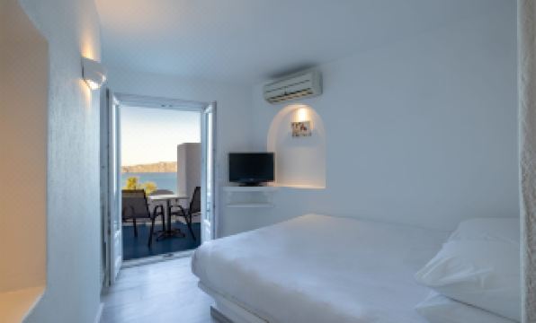 A small room for reception where Ms. Fei will greet you with a smile and give the details of the island with the keys to your villa and a map with all highlights of Santorini. Be ready to climb up and down stairs. There are lots of stairs.