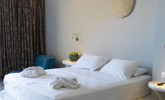 Camere direttamente sulla spiaggia. Molto ampie e pulite. La spiaggia di perissa è tra le più grandi e ben organizzate. Un plauso va a Cristina la direttrice della struttura, attenta, premurosa, gentile, simpatica. Unico neo è la colazione che si fa nel locale adiacente, poco varia, caffè o cappuccino non compresi, personale scortese.