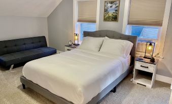 The living room has a large, comfortable couch, and a 55" smart TV with Samsung TV Plus, and smart apps like Hulu and Netflix to sign into. We also have board games, puzzles, and outdoor games during warmer months (corn hole and badminton)!