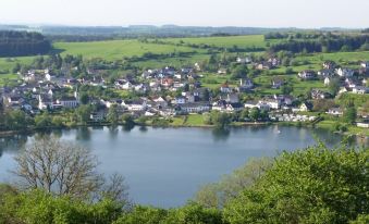 Der nächstgelegene Bahnhof ist Gerolstein Bf, der etwa 29 Minuten mit dem Auto von der Unterkunft entfernt (24,0 km) ist.Gibt es einen Bahnhof oder eine U-Bahn-Station in der Nähe von Vacation home Eifelhöhe with Maar panorama?
