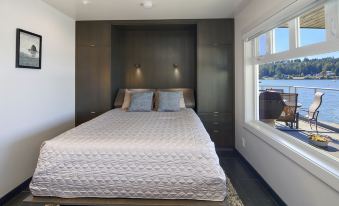 You are right on the water's edge in this beautiful studio apartment in Seabeck. Enjoy meals on the covered patio while taking in the views of Seabeck Bay. This studio offers a fully equipped kitchen including refrigerator, stove and oven, and microwave. Sleep in a queen sized wall bed with a Select Comfort mattress you may adjust to your comfort level on either side with a remote control. A cabinet on each side for clothing, three large drawers and a pull out tray that acts as a sofa table by day, or a bedside table at night. Adjustable reading/night lights. Porcelain tile floors throughout. The bathroom has heated floors with a large walk in shower. Shampoo, soap and hairdryer are provided. Tankless hot water heater provides plenty of hot water. Remotely controlled Soni 32' TV rises up from and disappears into cabinet. HIGHSPEED INTERNET available. Stacking washer and dryer accessible from patio with laundry detergent.iron and ironing board. THIS IS A NO SMOKING, NO PET PROPERTY (sorry, no exceptions). Minimum two-night stay; weekly and monthly rates are available. This property is not safe for children.