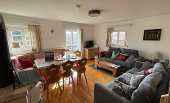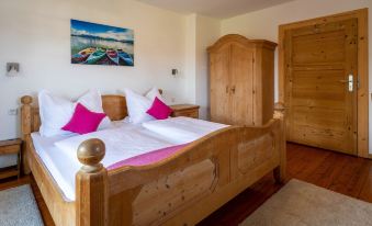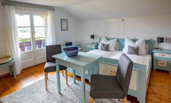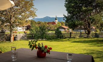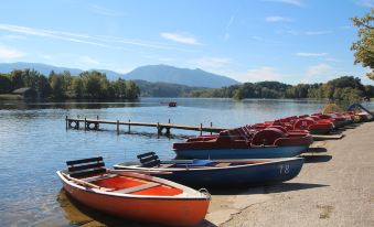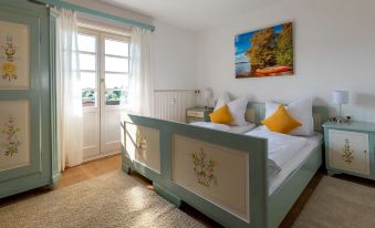 The rooms are spread over three floors with a fantastic panoramic view of the Bavarian mountains and lakeland. It takes 5 minutes to walk through the village of Seehausen to Lake Staffelsee, past chickens, cows and horses; if you want, you can stop by the bakery or the corner shop. Boat rental or boat trip on Lake Staffelsee. Murnau with its pedestrian zone, culture and shopping opportunities is a few minutes away by car.