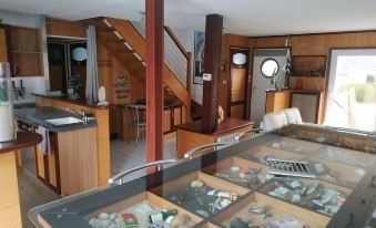 _ Large open living space of 50 m2 with lounge, living room, kitchen with direct access to a wooden terrace of 48 m2 rear furnished with bar, garden furniture, relax, platform, large outdoor table, barbecue, umbrella.