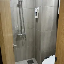 Die Dusche und die Toilette befanden sich im selben Raum, daher war es sehr klein, aber das war nicht so schlimm, da ich nur eine Nacht dort war. Ich fand das Zimmer sehr sauber und hatte eine Waschmaschine. Allerdings gab es im Badezimmer keine Steckdose, was etwas unpraktisch war. Ich würde es empfehlen, wenn Sie nicht für längere Zeit bleiben!