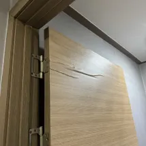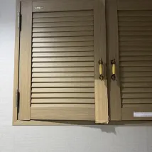 - Die Bretter an Türen, Möbeln und Fensterrahmen blättern ab.