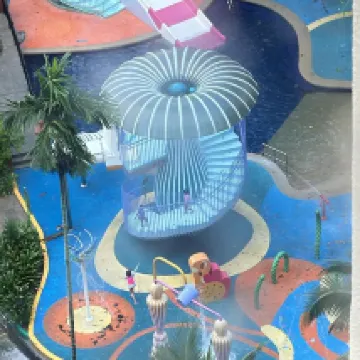 There are quite a few things in the hotel that seem to have issues. It might be good to have them checked or repaired. For example, several facilities at the kids’ pool and the children’s playground appear to be missing or not in working condition. It might be good to look into repairing or replacing them.