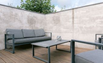 There is a private parking space for 2 cars and the sunny terrace has both a table with chairs and a lounge set.