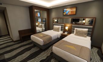 Standardzimmer mit zwei Einzelbetten und Stadtblick
