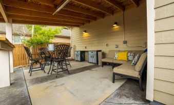 Gorgeous backyard with several seating areas. Beautiful landscaping with fruit and pine trees and hydroponic gardens. The house is lovely and very clean. The host is friendly and helpful. The neighborhood is quiet and safe.