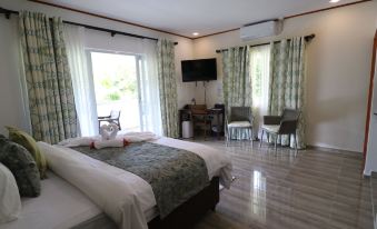 Ein tolles Guesthouse in den Bergen. Mitten in der Natur. Der Ausblick ist beeindruckend. Wir waren schon mehrmals auf La Digue, so eine tolle Aussicht hatten wir noch nie! Mit dem Fahrrad ist alles gut zu erreichen, die Lage ist ruhig und wunderschön. Man ist in ca. 5 Minuten mit dem Fahrrad an der wunderschönen Grand Anse und in 1 Minute bei Mimis Cafe (sehr lecker, aber auch teuer). Man muss zum Hotel jedoch am Ende einen kleinen steilen Berg hinauf (schlecht für Gehbehinderte). Supermärkte gibt es in der Nähe (ca. 5 Minuten mit dem Rad). Das Preis-Leistungs-Verhältnis ist super, deutlich günstiger als bei vielen Unterkünften am Hafen. Wir würden empfehlen direkt über die Unterkunft zu buchen. Das Personal und der Besitzer sind großartig - immer freundlich und hilfsbereit. Es gibt auch einen kleinen Pool mit angenehmer Wassertemperatur. Wasserkocher gibt es in jedem Zimmer. Die Zimmer sind sehr geräumig, alles war sehr sauber und gepflegt. Die Betten groß und weich. Die Bäder mit Fenster und ebenfalls sehr groß. Alles war bestens. Das Essen im Restaurant war sehr lecker und preiswert, man kann auch Mittagessen oder Abendessen bestellen. Es gibt viel Auswahl, auch an vegetarischen Gerichten. Wir waren sehr zufrieden - absolute Weiterempfehlung!! :-)