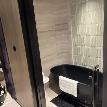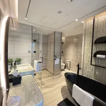 3) Hardware: Der Raum ist gut schallisoliert! Das Zimmer ist geräumig und hell, die gesamte Einrichtung ist recht neu (die Möbel sind vernünftig verteilt/kompakt), das Bett ist groß und breit, mit mittlerer Härte und Weichheit, die Kissen haben eine akzeptable Höhe und Weichheit und die Bettwäsche fühlt sich zart und weich an (es fühlt sich toll an, einzuschlafen). Das Badezimmer ist in einen Trocken- und einen Nassbereich unterteilt und bietet zusätzlich die Möglichkeit, in der Badewanne zu baden. Die Badeprodukte der schwedischen Duftmarke Byredo haben einen sanften Duft und sind von guter Qualität. Die eingebaute Terrasse ist recht groß und Sie können fast den ganzen Tag die Sonne genießen. Zur weiteren Ausstattung gehören Wasserkocher, Kaffeemaschine, Safe, Mini-Gefrierschrank, intelligente elektronische Uhr usw.