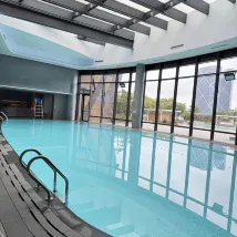 1) Lage: Das Hotel liegt auf der Südinsel des Dishui-Sees und bietet einen 120-Grad-Blick auf den See. Die Einkaufsstraße „Double 11“ der Twin Towers ist gut zu sehen und das Hotel liegt eindeutig in erster Linie in der Nähe des Sees. Der Infinity-Pool im Hotel ist der beste Ort, um sich das Feuerwerk „jeden Samstag“ anzusehen. Das Hotel liegt etwa 2,5 km von der U-Bahn-Station Dishui Lake der Linie 16 (35 Gehminuten), etwa 2,5 km vom China Maritime Museum (40 Gehminuten) und etwa 4 km vom Shanghai Planetarium (1 Stunde zu Fuß) entfernt.