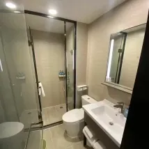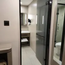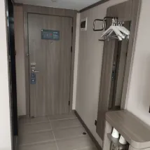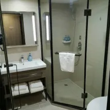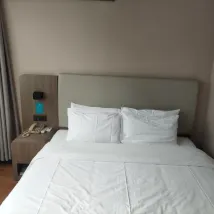Es ist ein gewöhnliches Budget-Hotel, es ist in Ordnung, eine Nacht zu bleiben, wenn man etwas in der Nähe hat, und es ist nicht teuer. Der Raum ist nicht so groß, wie es sich anhört. Das Klebeband an der Badezimmertür ist teilweise abgezogen, aber es beeinträchtigt die Nutzung trotzdem nicht. Essen zum Mitnehmen wird von Robotern geliefert. Sie können beim Auschecken auch an der Rezeption nach einer weiteren Flasche Wasser fragen, was sehr praktisch ist.