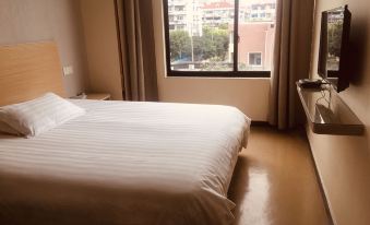 在攜程上預訂房間的時候有兩個選擇,一個便宜一些一個貴一些,貴的就是圖中所示的惠選大床房,這裏寫的是“有窗”。然而去住店時,卻被告知這個房型是“部分有窗”,於是給我分了一個無窗的房間。當我問及是否能給予補償時,工作人員一再回避問題,衹説“沒得換,其他房間都滿了”,於是我衹能住進一個無窗的、空氣極度不流通的房間,且未拿到任何補償。房間衞生一般,床鋪上還殘留着上一位客人的毛髮。環境一般,地面油漆存在剝落現象,且花灑漏水,半夜滴答不斷擾人清靜。隔音一般,清潔人員在走廊講話的聲音可以聽得一清二楚。總而言之,住店千萬慎重。如果是圖方便,可以考慮;如果圖舒適,請另擇他處。
