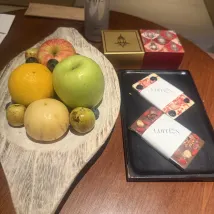 Es gibt köstliche Pralinen im Zimmer und Obst gibt es auch