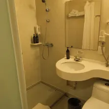 Ich bin gestern Abend um 9:30 Uhr zur Rezeption gegangen, um einzuchecken, und mir wurde gesagt, dass das Doppelzimmer noch gereinigt und gereinigt wird, also musste ich warten ... Der Punkt ist, dass ich keine Wartezeit ertragen konnte Ich habe dringend darum gebeten, in ein Zweibettzimmer zu wechseln, und der Rezeptionsleiter der anderen Partei hat auch kooperiert, dafür bin ich ihm sehr dankbar ... Als ich jedoch im Gästezimmer ankam, zog ich den Stuhl heraus, um ihn hinzustellen Dinge, und habe festgestellt, dass darauf übrig gebliebene KFC-Hühnernuggets aus einer unbekannten Zeit waren. Dieses Maß an Hygiene ist besorgniserregend ~ es muss keinen Sinn machen, Hygiene zu betreiben, neben dem Badezimmer. Die Ecken sind auch voller Schimmel, das bin ich wirklich überzeugt