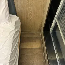 1. Direkt hinter der Tür steht ein Bett. Wenn man einen Koffer vor die Tür stellt, kann man die Tür nicht einmal öffnen.