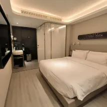 Erwähnenswert ist noch, dass die Räume alle intelligent mit kleinen Bedienelementen gesteuert werden. Besonders bequem sind die Tiefschlafkissen. Mir gefallen die Kissen von Atour sehr gut. Das Zimmer war auch sehr sauber. Als ich am Zimmer vorbeikam, sah ich, wie die Dame aus dem Gästezimmer die Bettschränke umdrehte und sie in das Qing-Zimmer stellte.