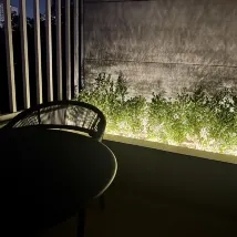 Die Terrasse ist großartig. Tagsüber kann man Vögel und nachts Flugzeuge beobachten. Man kann das Financial Center, eine der drei Suiten, vage erkennen.