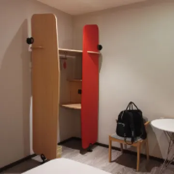 The location is very good for a transit layover due to its location right next to the train station. Our "skylight" room had a terrible air circulation and a bad room layout. The bed was good. I could shower for 3 minutes before the shower floor would flood and iwater would enter the room. Overall not very impressed. The international Ibis brand was upgraded a few years ago but don't let the wineglasses next to the reception fool you, the"red" Ibis brand remains a rock bottom budget hotel hardly ever worth of its 3 star rating. This property is no exception