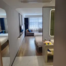 Hotel is nice and clean but staffs cannot speak English. The location is a bit far from subway station. This hotel provide Chinese desserts durring I stayed. I recommend ppl who want to stay in the tech area.